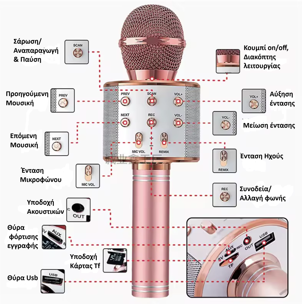 Λειτουργεί ως κανονικό μικρόφωνο υψηλής ευαισθησίας, επιτρέποντάς σας να τραγουδάτε ή να μιλάτε με καθαρό και δυνατό ήχο, σαν να βρίσκεστε σε πραγματική σκηνή karaoke.